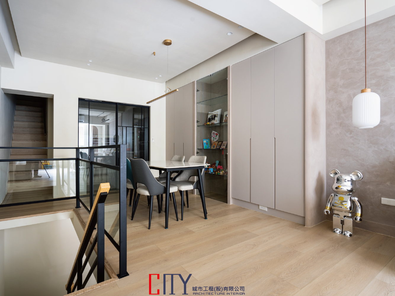 為了改善採光與生活動線,我們大膽地將樓梯位置重新調整,讓光線得以從前後貫穿整棟建築,同時也讓每層空間的使用更加順暢、開闊。